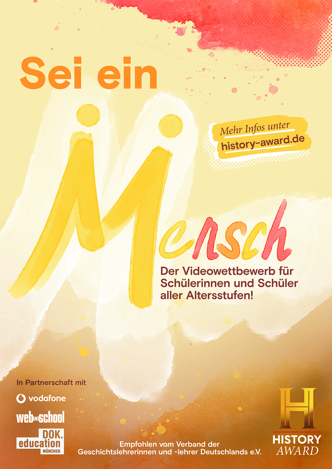 Der HISTORY-AWARD 2023 wurde unterstützt von GigaTV, dem TV-Angebot von Vodafone, DOK.education, P.M. History und dem Jugendmagazin web and school sowie empfohlen vom Verband der Geschichtslehrerinnen und -lehrer Deutschlands e.V.